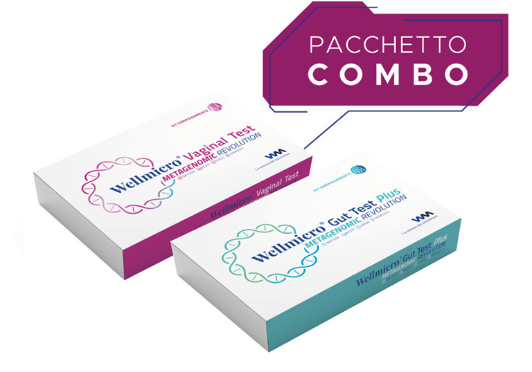 PACCHETTO COMBO Wellmicro® Gut Test Plus & Vaginal Test - Metagenomic Revolution consiste in due report che permettono di conoscere la composizione di batteri, miceti (funghi), virus a DNA e parassiti (protozoi e metazoi) del microbiota intestinale e vaginale.